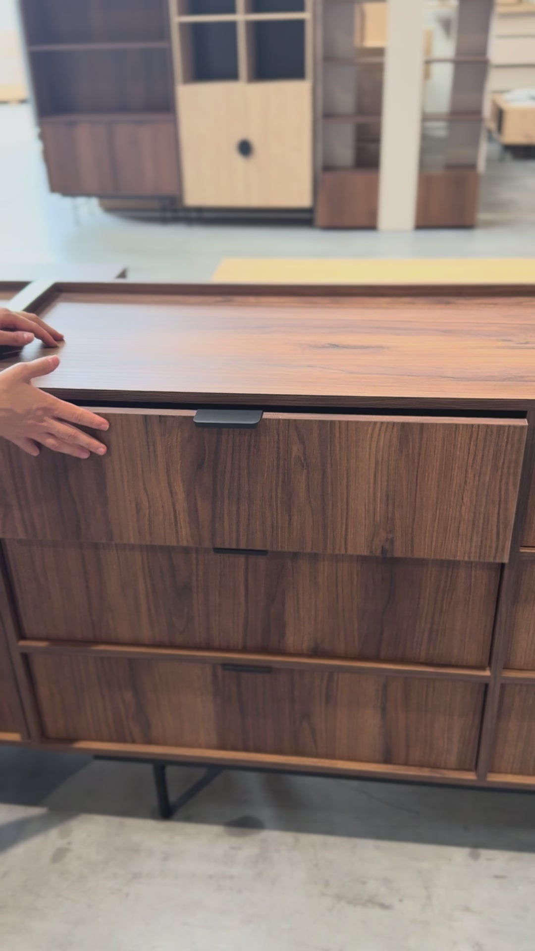 Komoda z kolekcji EDISON łączy minimalistyczną bryłę z funkcjonalnością, której potrzebujesz na co dzień. Horyzontalny korpus w wybarwieniu głęboki brąz/orzech ociepla aranżację, a smukła, czarna metalowa podstawa unosi mebel i nadaje mu lekkości. Rytm frontów z subtelnymi uchwytami porządkuje przestrzeń i dobrze współgra z nowoczesnymi, skandynawskimi oraz japandi wnętrzami.