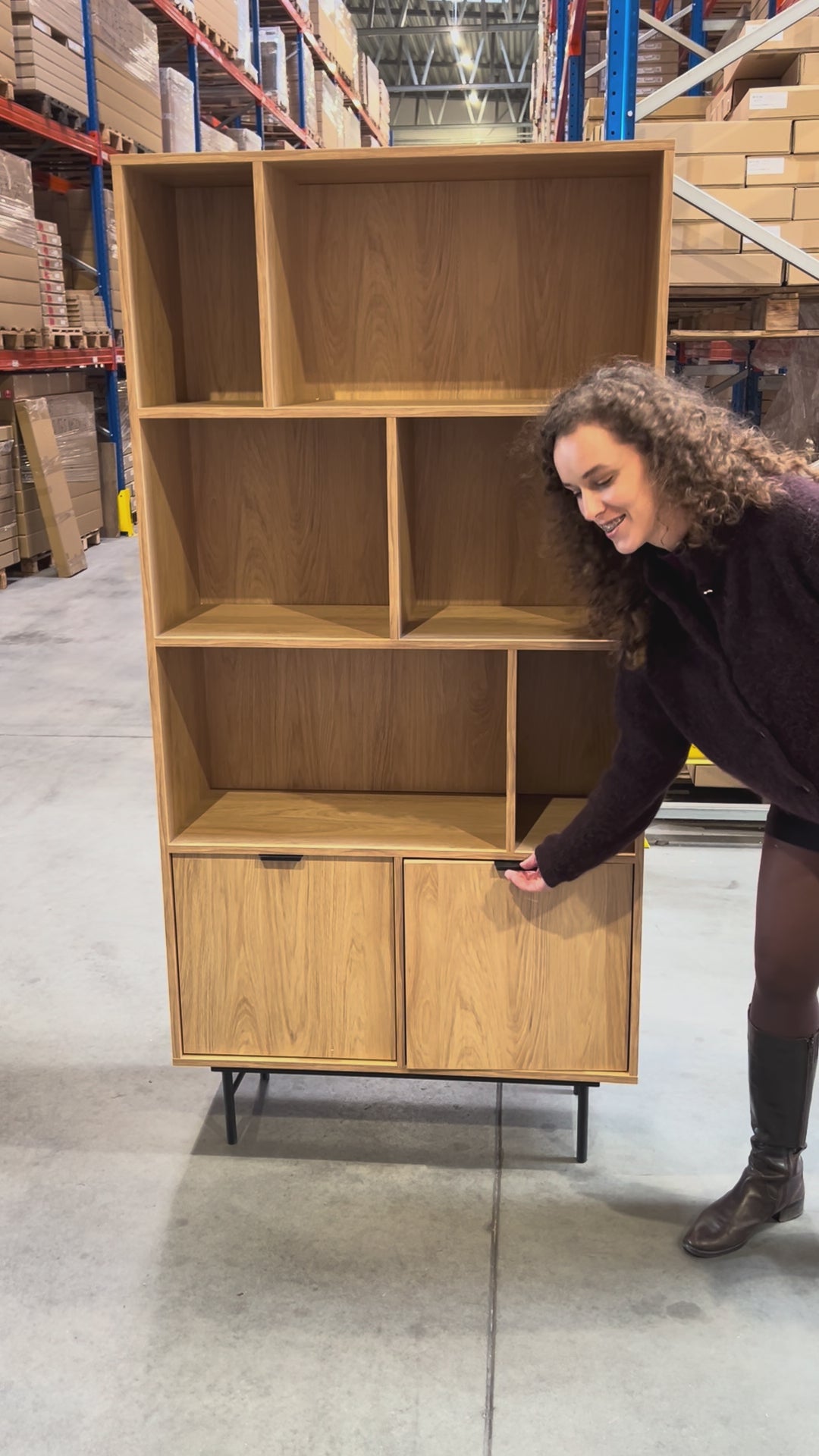 Regał z kolekcji EDISON łączy harmonijną, skandynawską linię z funkcjonalnym układem przechowywania. Asymetrycznie rozmieszczone otwarte półki tworzą spokojny rytm na ścianie i pięknie eksponują książki, albumy, rośliny czy dekoracje. Dolna szafka dwudrzwiowa porządkuje to, co wolisz ukryć — dokumenty, tekstylia, zapas świec — dzięki czemu kompozycja pozostaje czysta i lekka.