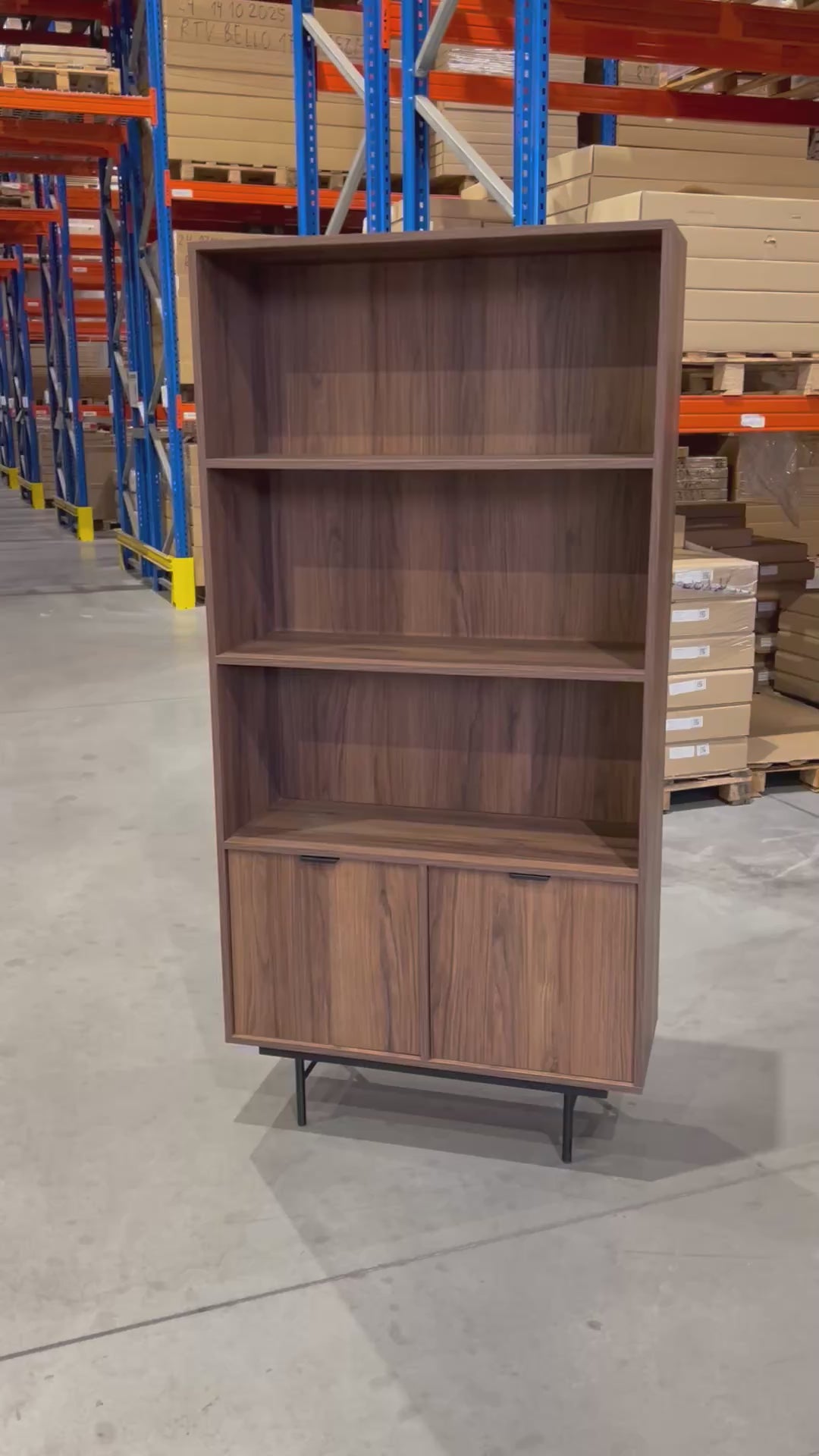 Regał EDISON w wybarwieniu głęboki brąz/orzech porządkuje przestrzeń i wprowadza do wnętrza przytulne ciepło drewna. Asymetryczne otwarte półki tworzą spokojny rytm – idealny na książki, albumy i dekoracje – a dolna szafka dwudrzwiowa ukryje to, co chcesz mieć pod ręką, ale poza wzrokiem. Smukła, czarna metalowa podstawa unosi korpus, nadając bryle lekkości i ułatwiając sprzątanie.