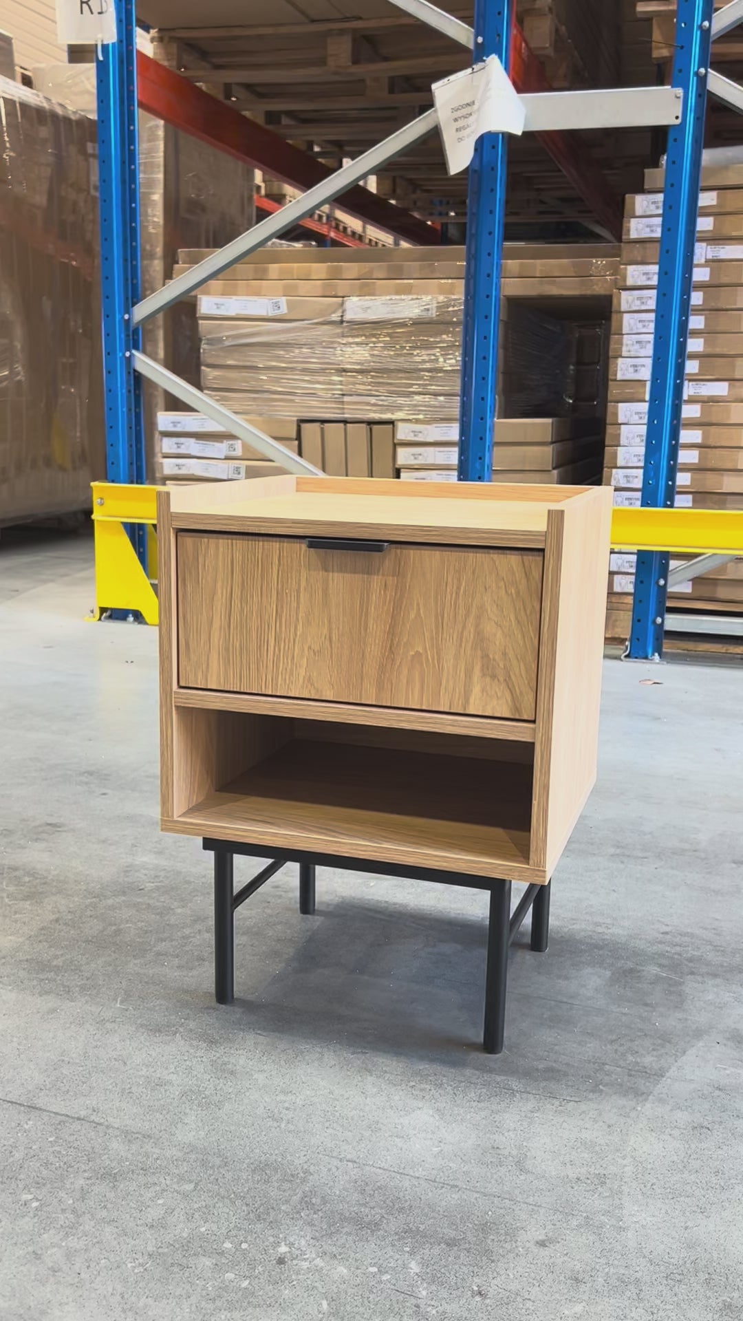 EDISON w wybarwieniu jasny dąb to szafka nocna, która łączy prostą, harmonijną bryłę z ciepłem naturalnego rysunku słojów. Smukła podstawa na czarnych, metalowych nogach unosi korpus i nadaje mu lekkości, dzięki czemu mebel świetnie odnajdzie się w nowoczesnych i skandynawskich sypialniach – od jasnych, minimalistycznych aranżacji po przytulne wnętrza z miękkimi tkaninami.