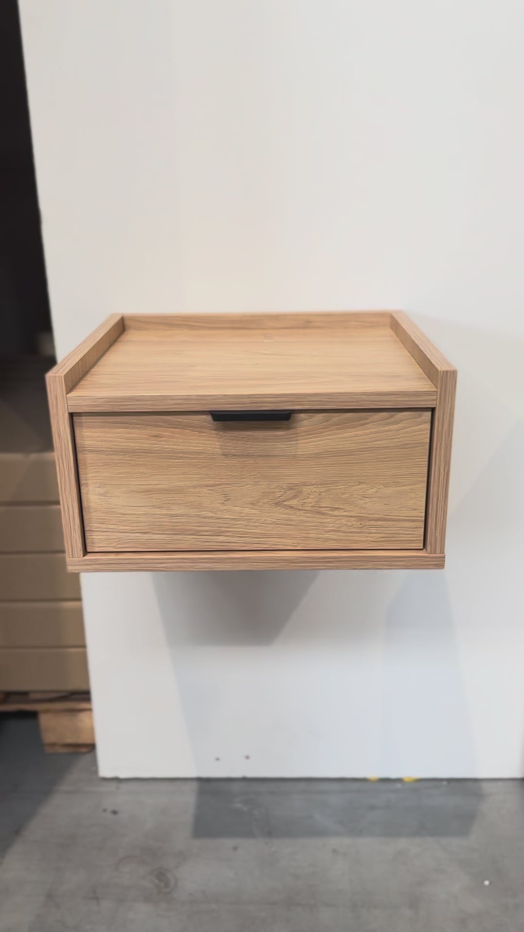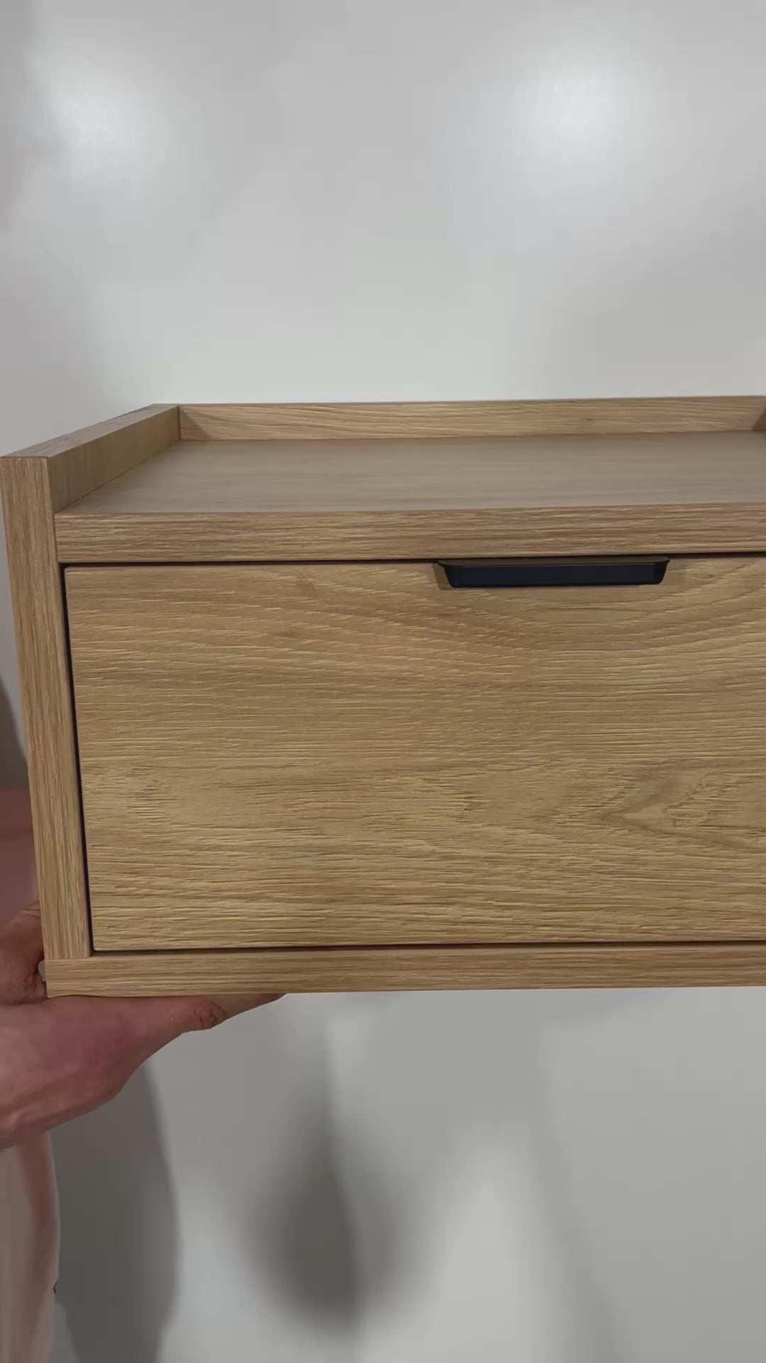 Szafka nocna wisząca dębowa EDISON porządkuje przestrzeń przy łóżku i wizualnie odciąża aranżację. Montowana do ściany, tworzy efekt „lewitującej” bryły – idealny do małych sypialni, gdzie liczy się każdy centymetr i łatwe sprzątanie. Jasny odcień dębu z wyraźnym rysunkiem słojów ociepla wnętrze, a precyzyjnie poprowadzone krawędzie podkreślają minimalistyczny charakter kolekcji.